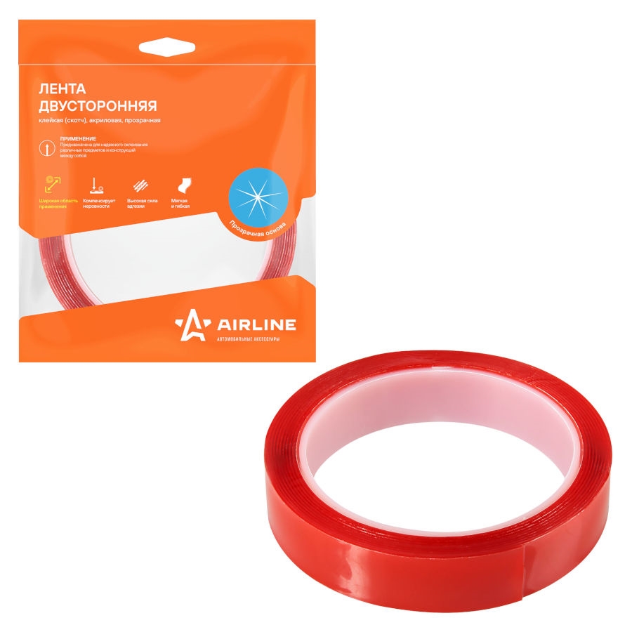 Ленты предназначены для соединения между собой предметов из различных материалов, не портя их сверлением отверстий или нанесением клея. Мягкая и гибкая прозрачная основа обеспечивает надежное сцепление даже с неровными и структурированными поверхностям и делает ее практически незаметной. Лента обладает повышенной силой адгезии (сцепления), в качестве клеевой поверхности в них используется акриловый клей. Двусторонняя лента AIRLINE незаменима при ремонтных работах в автомобиле, гараже, дома, или на даче.
