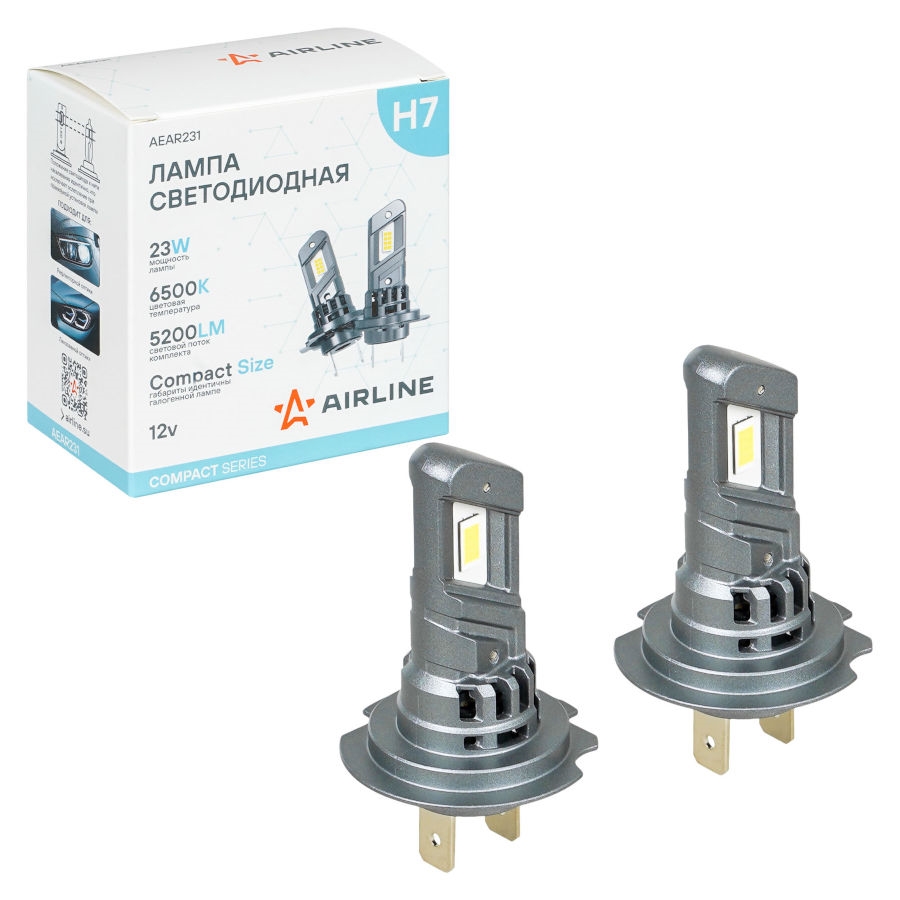 LED лампы AIRLINE AEAR231 с цоколем H7 предназначены для рефлекторной и линзованной оптики, формируют четкую светотеневую границу, направляя световой поток на дорожное полотно и исключая ослепление встречных водителей, что повышает безопасность эксплуатации.