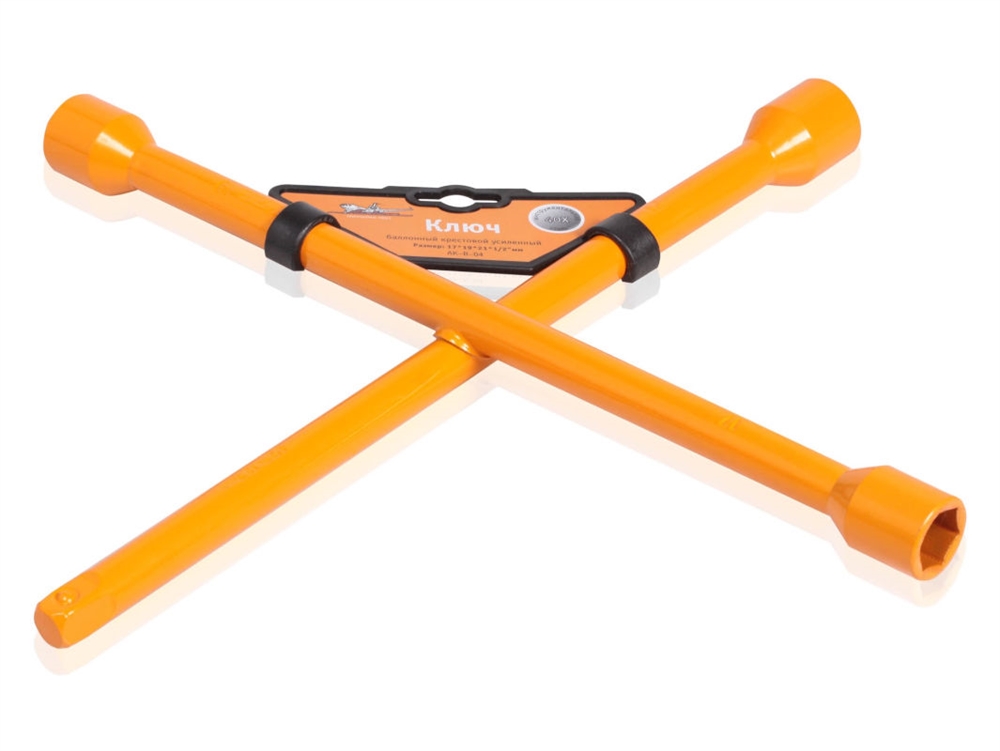 Ключ баллонный крестовой изготовлен из инструментальной стали. Имеет повышенный запас прочности. Предназначен для монтажа/демонтажа резьбовых соединений при замене колес на легковых автомобилях. Универсальность данного баллонного ключа заключается в наличии нескольких размеров, тем самым позволяя использовать ключ с большим количеством колесного крепежа. Абсолютно все баллонные ключи производятся по единой технологии на современных автоматизированных предприятиях. Тестирование каждого ключа происходит в собственной испытательной лаборатории в два этапа, что является залогом качества и надежности.