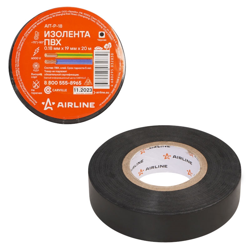 Изолента AIRLINE изготавливается из поливинилхлоридной пленки с нанесённым на неё клеевым слоем и полностью соответствует ГОСТу-16214-86.