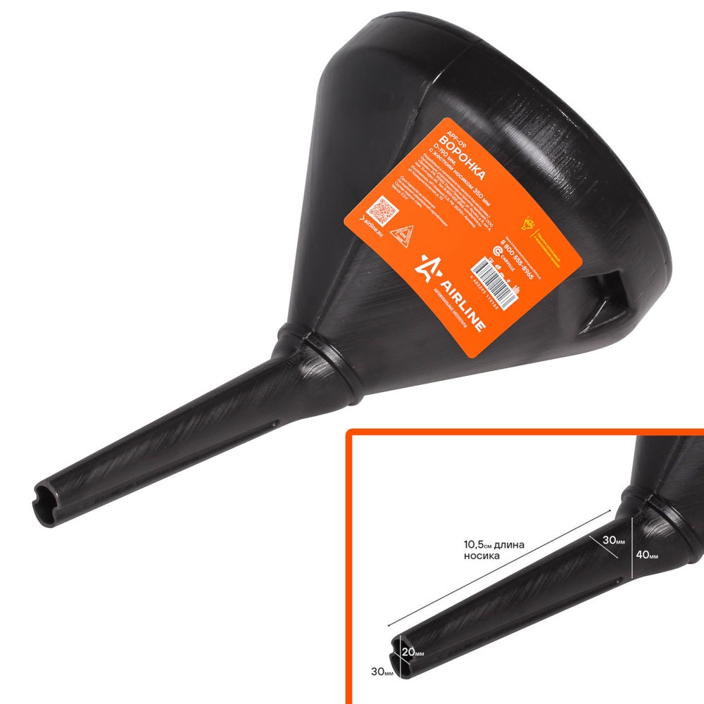 Воронка поможет аккуратно произвести процесс переливания жидкостей. Данная воронка имеет диаметр 190 мм. Благодаря большой горловине воронки изделие подходит для переливания большого объема жидкости. Воронка укомплектована стальной специальной мелкоячеистой сеткой для фильтрации мусора при переливании.