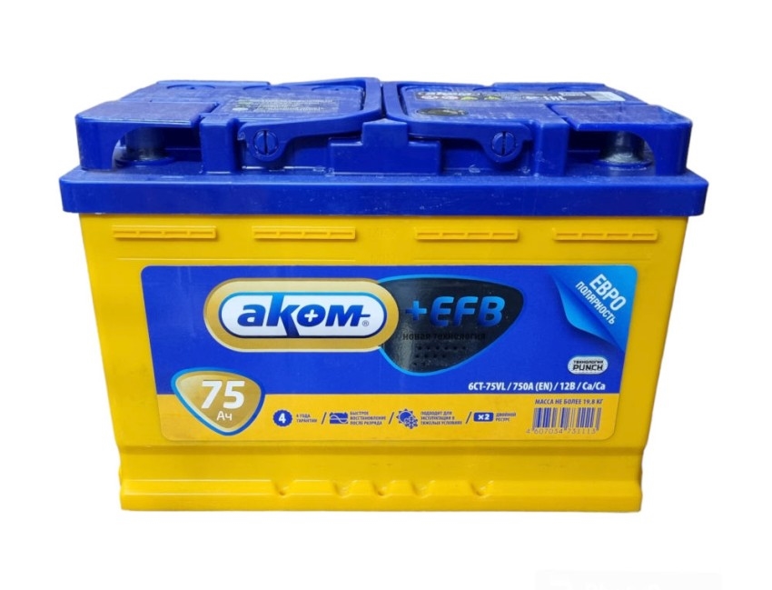 Akom+efb АКБ залитая обратной полярности 75Ah
