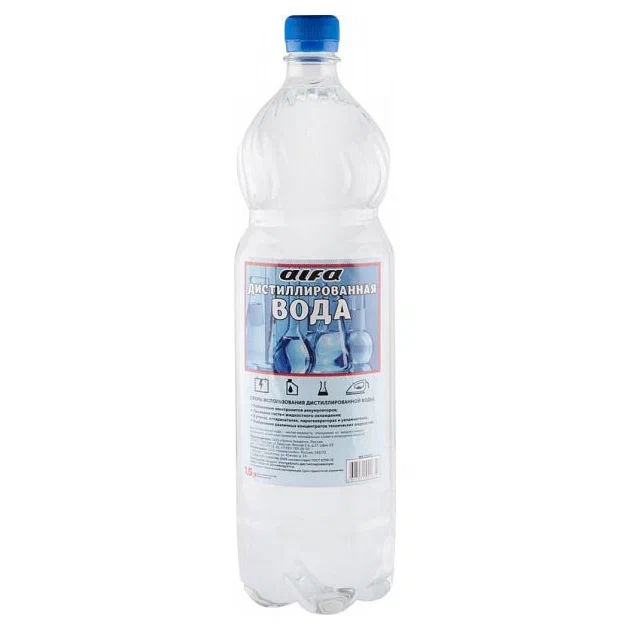 Вода очищенная от растворённых в ней минеральных солей, органических веществ и других примесей путём дистилляции по ГОСТ.WA22670