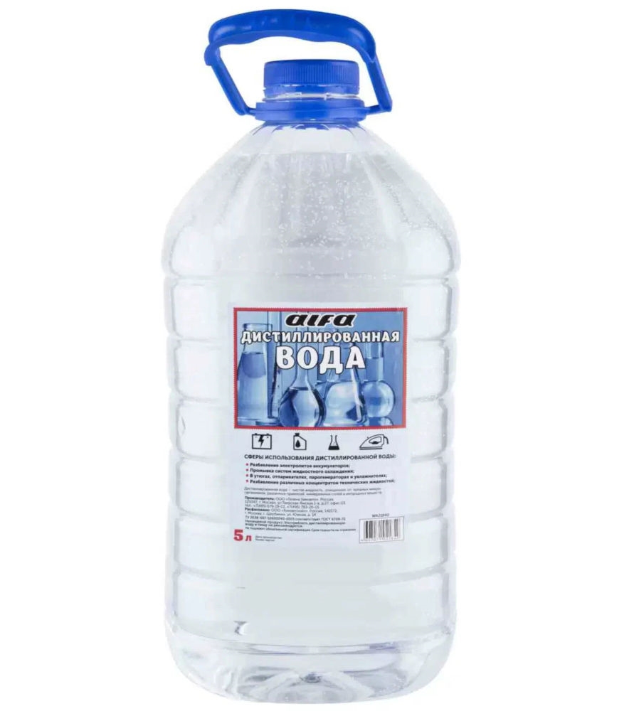 Вода очищенная от растворённых в ней минеральных солей, органических веществ и других примесей путём дистилляции по ГОСТ.WA21840 , WA23721