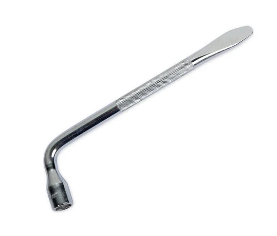 Ключ колесный баллонный, Г-образный — это прочный и надежный инструмент, предназначенный для откручивания и затягивания колесных болтов и гаек. Изготовленный из хромованадиевой стали (CrV), он обеспечивает высокую прочность и долговечность, что делает его идеальным выбором для автомобилистов и профессионалов.