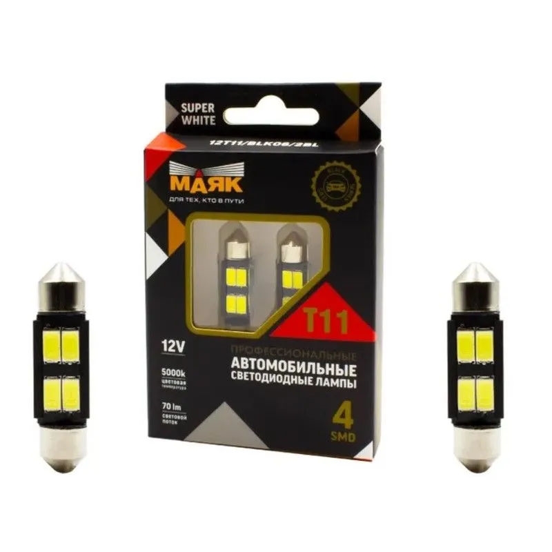 Маяк Лампа салона диодная белая T11,4SMD 5630/5730, 31мм, 2шт 12t11/blk05/2bl