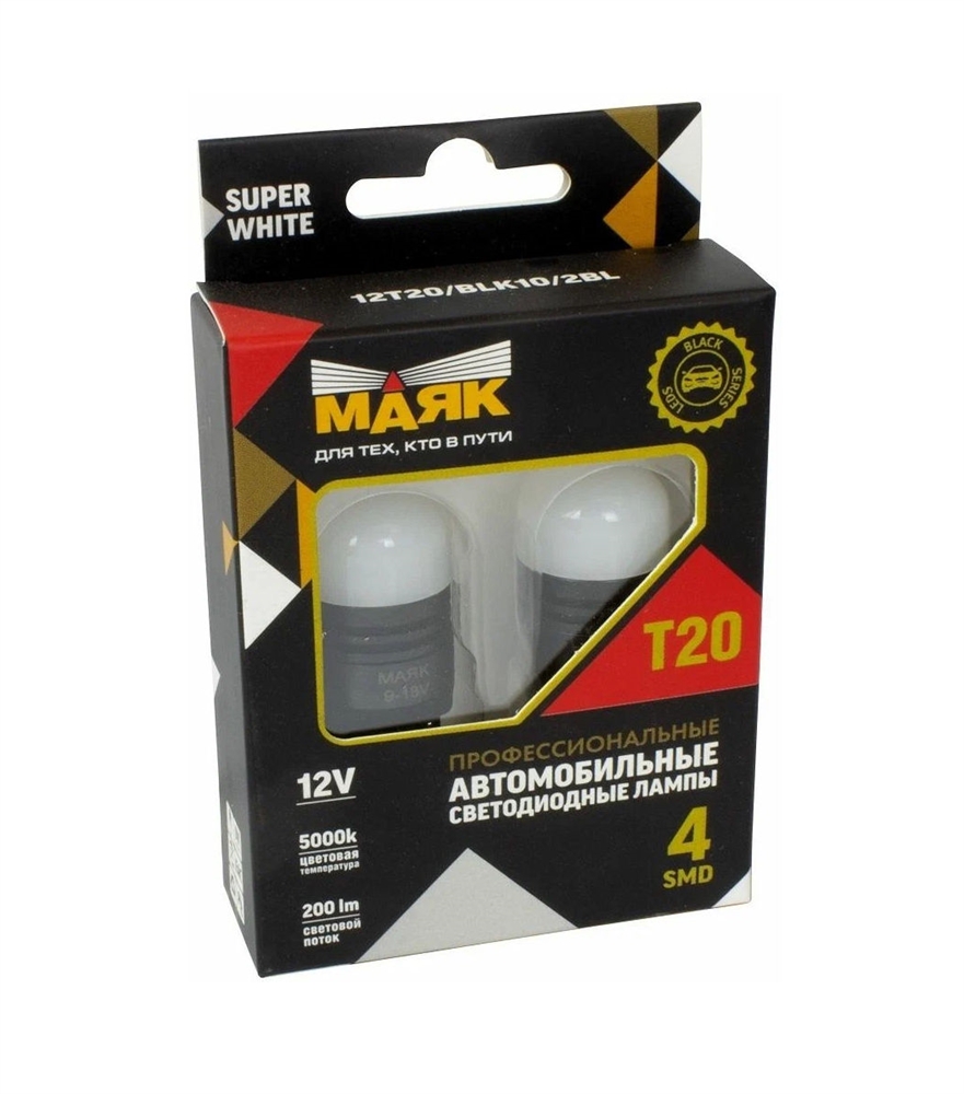 Маяк Лампа светодиодная белая T20, 4SMD 2835, W3x16d, 2шт 12t20/blk10/2bl